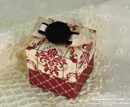 Since the paper matched so wonderfully I made one of the Spellbinders Square Bracket Edge Boxes to show it off. I love that box! It’s so small (favor sized) and cute!